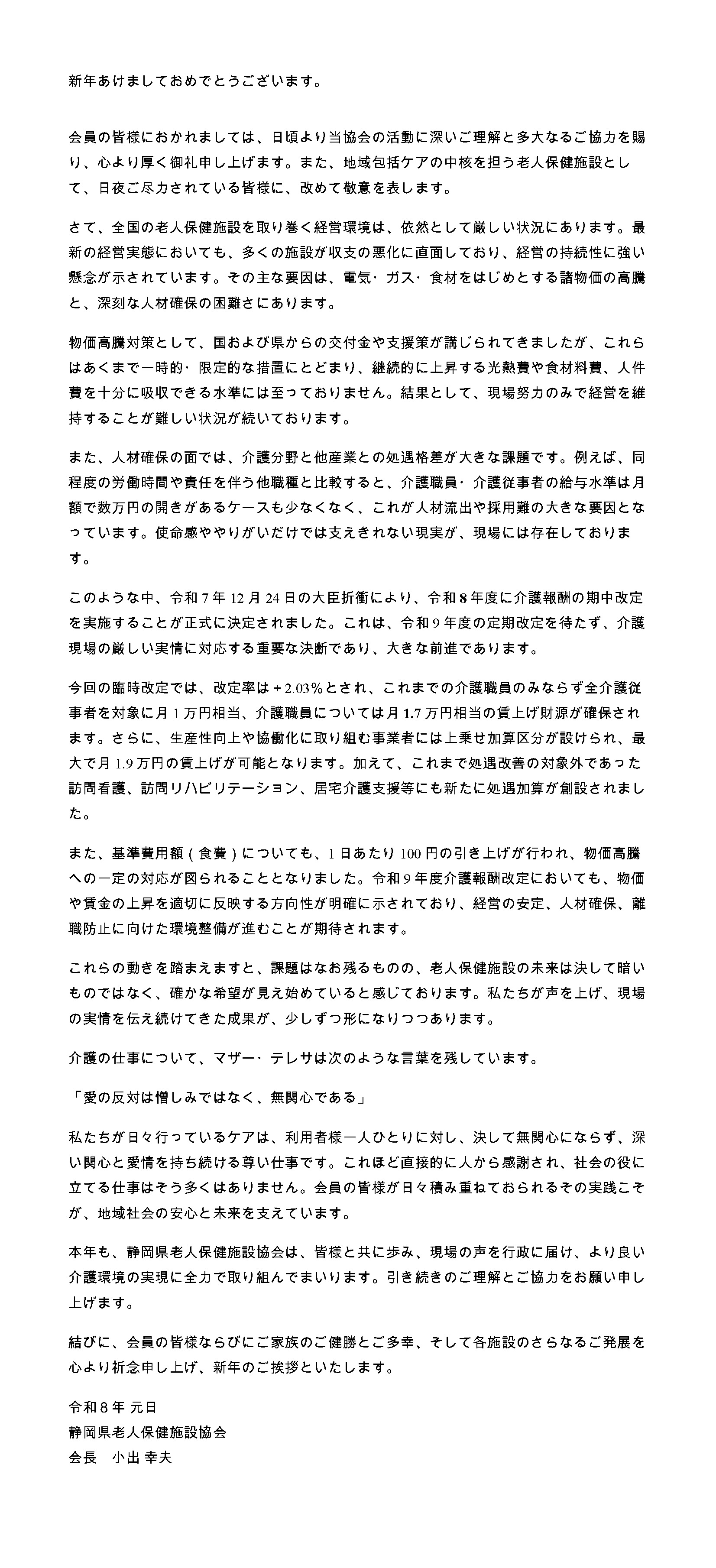 令和8年 新年のご挨拶 小出幸夫会長より